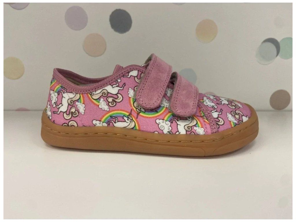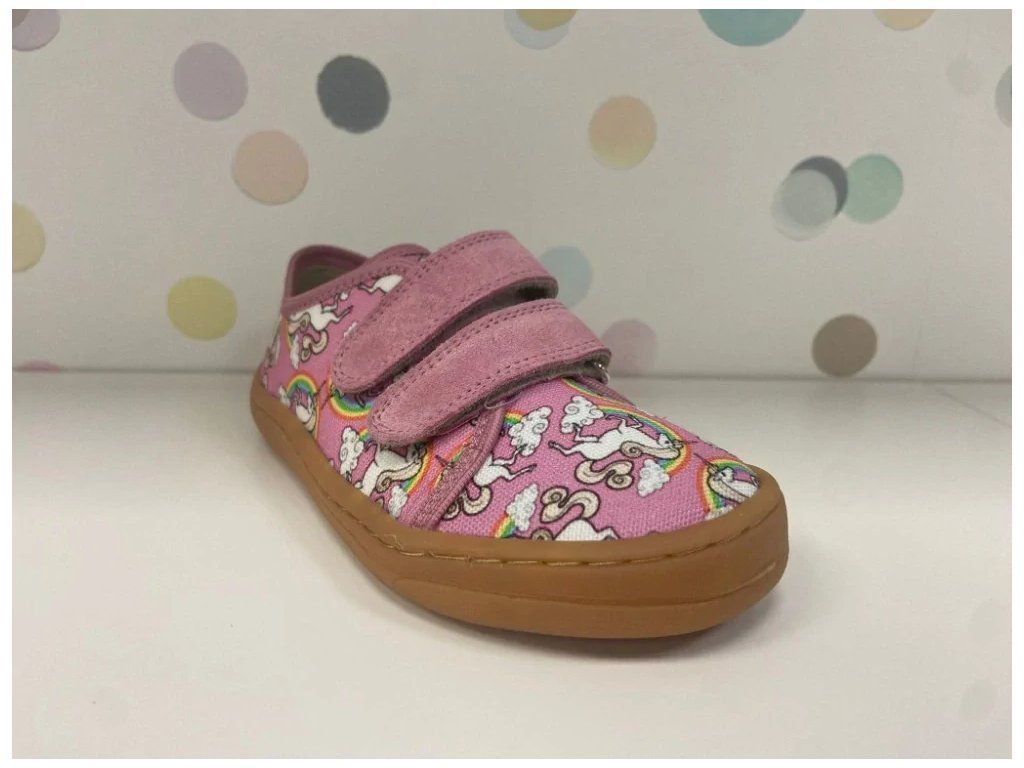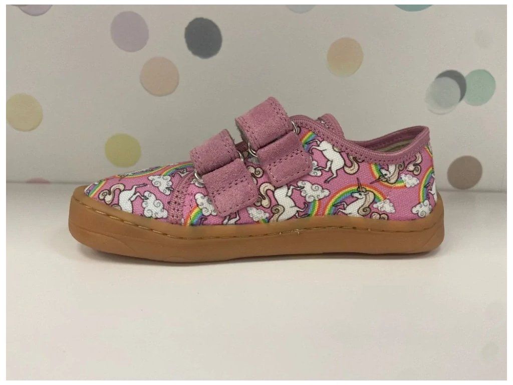 Barefoot dívčí plátěnky, lehká bota, s ohebnou podešví. Zapínání na suchý zip.