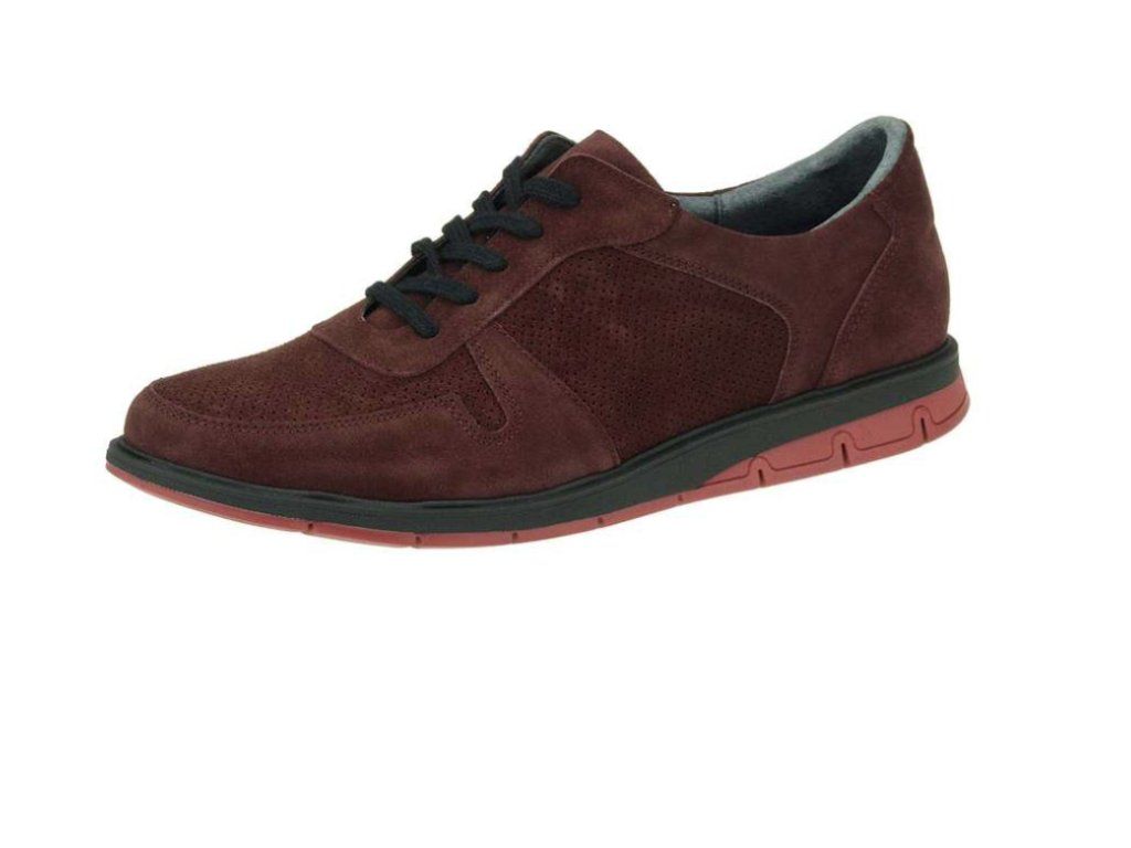 Tmavě vínové pánské polobotky se svrškem z kvalitní broušené kůže. Tento model má koženou stélku a pohodlnou podešev, která je zárukou celodenního nošení bez bolesti nohou.