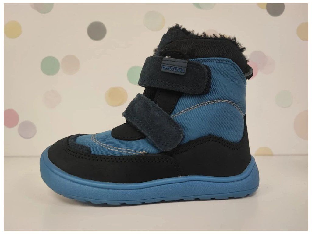 Stylová a funkční barefoot zimní obuv pro chlapce. Model Protetika NUT BLUE spojuje výhody barefoot technologie s ochranou před chladem a vlhkostí díky membráně PRO-tex. Skvělá volba pro aktivní děti, které chtějí mít nohy v teple, suchu a pohodlí i v zimě.