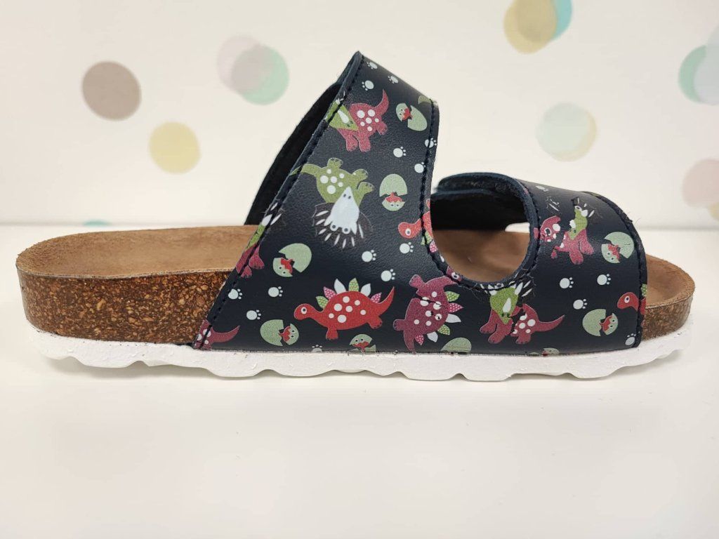 Zdravotní korkové pantofle s bílou podešví pro každodenní užití doma, ve škole a školce. Klasický „dvoupáskový“ model bot s regulovatelným obvodem svršku a s podporou u malíkové hrany. Vyrobeno ve Španělsku.