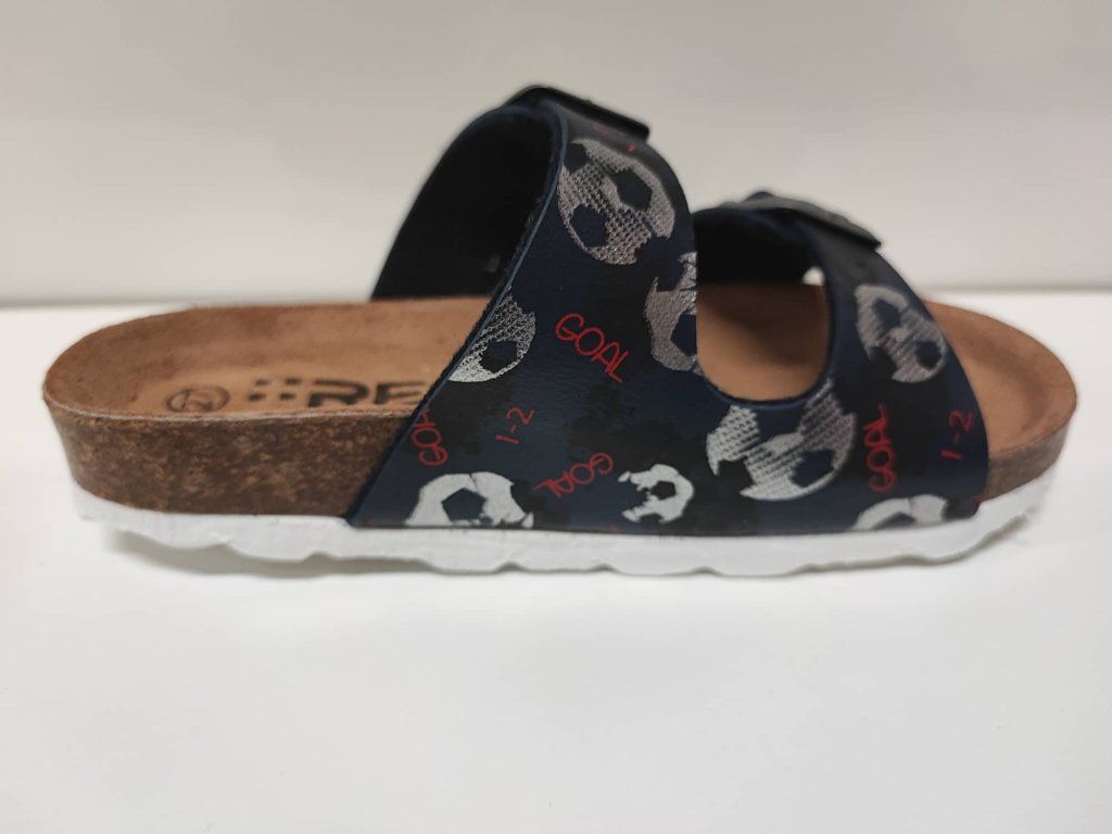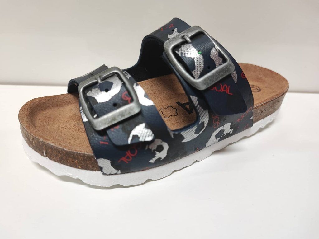 Zdravotní korkové pantofle s bílou podešví pro každodenní užití doma, ve škole a školce. Klasický „dvoupáskový“ model bot s regulovatelným obvodem svršku a s podporou u malíkové hrany. Jednoduchý světlý design s lákavými námořnickými motivy. Vyrobeno ve Španělsku.