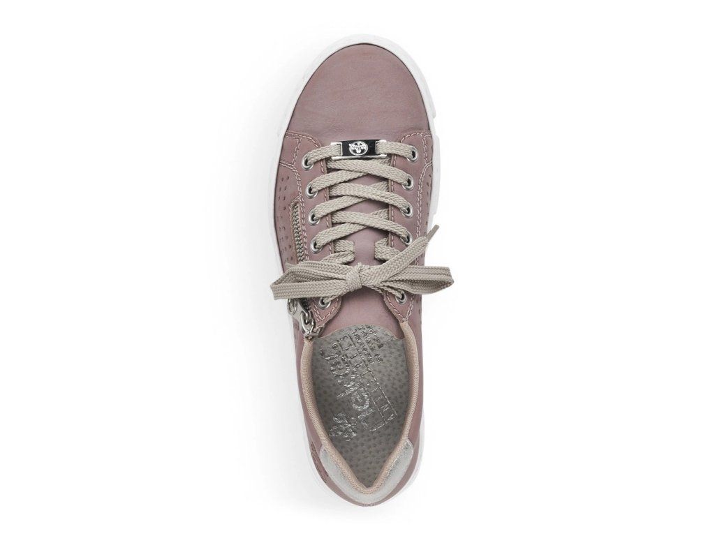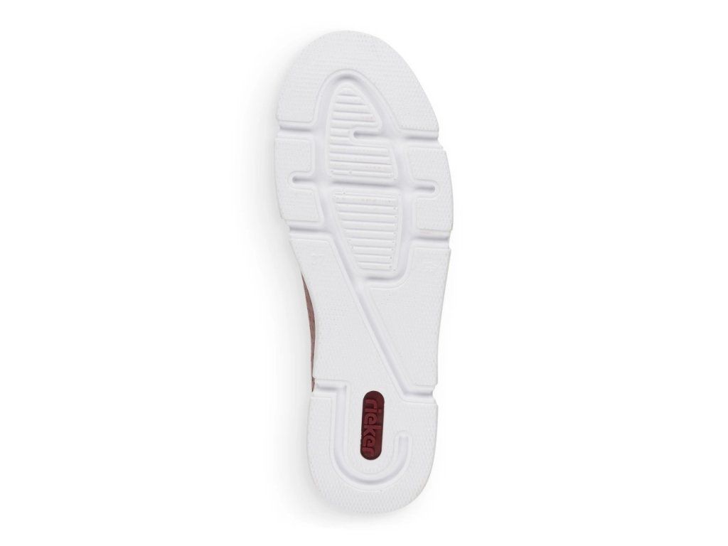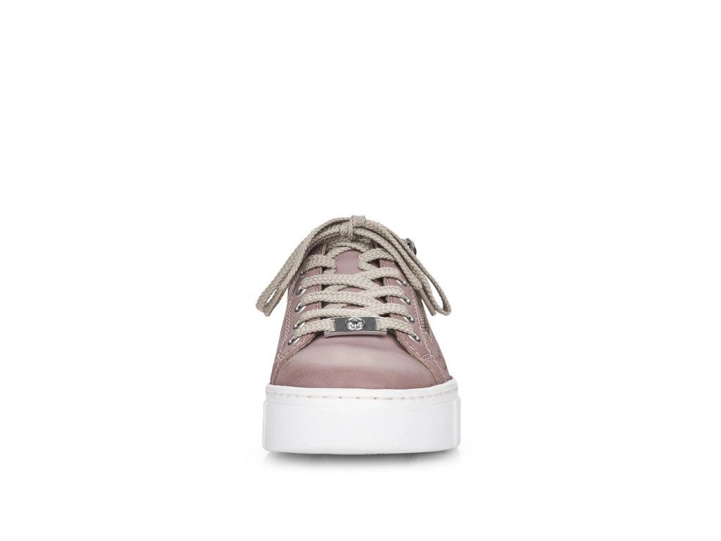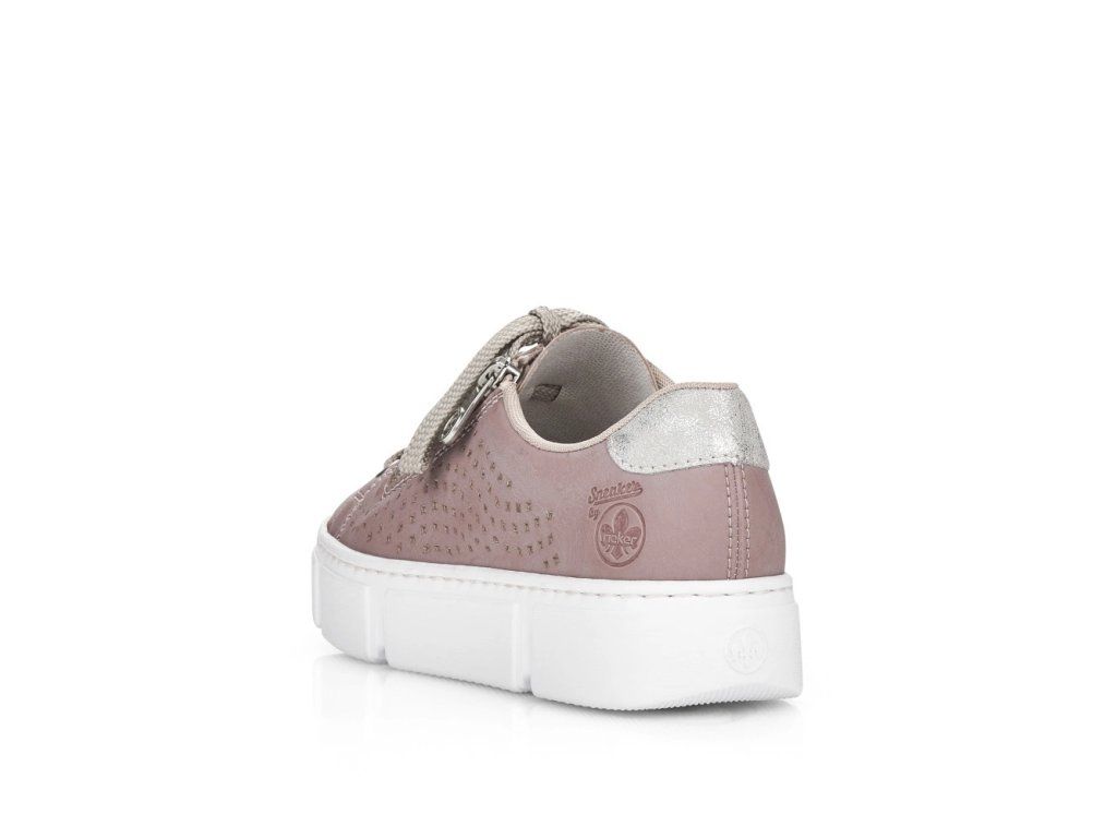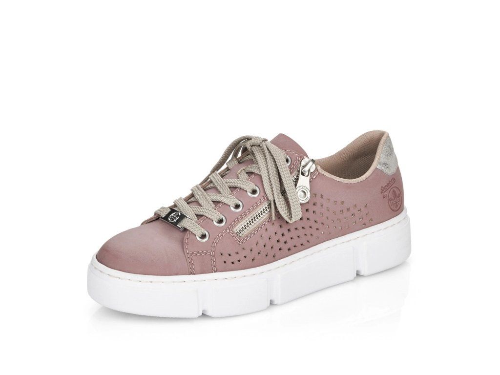 Dámské tenisky značky RIEKER Vám nesmí chybět. Hladký svršek je zdoben designovou perforací po stranách, která zajistí prodyšnost obuvi. Pro pohodlné obutí a přizpůsobení Vašim potřebám poslouží šněrování tkaničkami, a také funkční zip na vnější straně. Měkká stélka a podešev vybavená technologií Antistress zajistí maximální pohodlí při chůzi. Tento model je určen pro užší chodidla. S tímto kouskem skvěle doplníte každý Váš outfit do práce i do města.