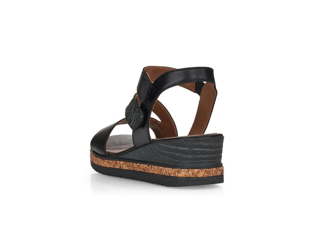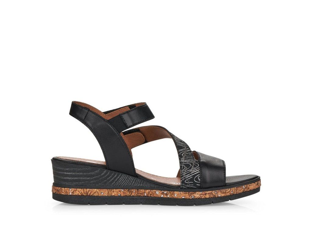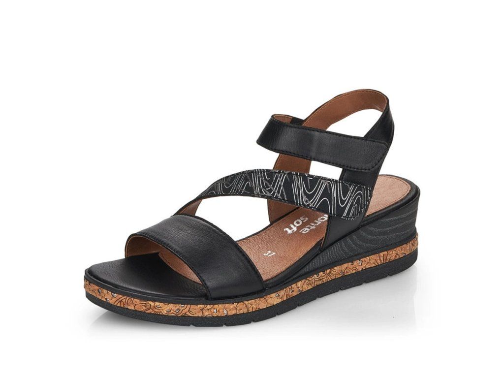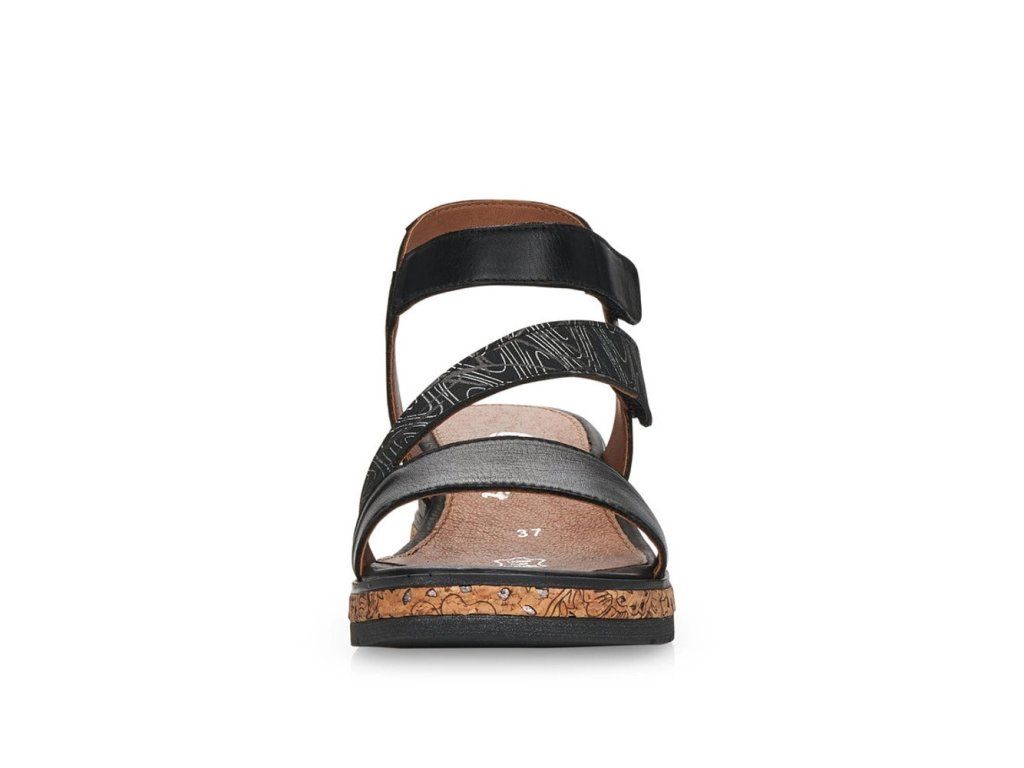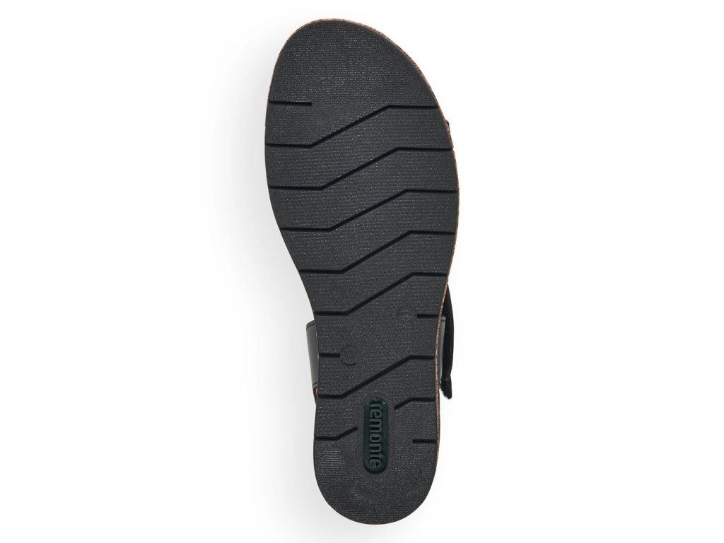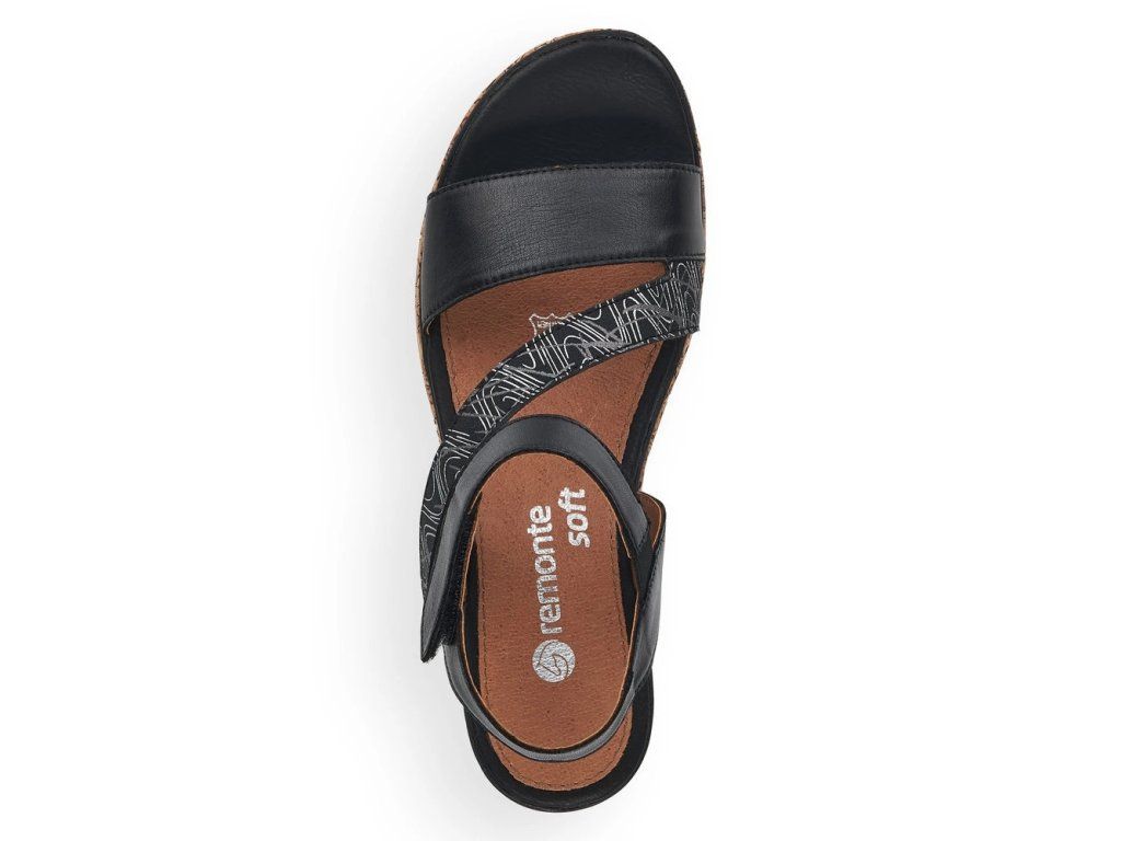 Dámské sandály od značky REMONTE (vyšší řada značky Rieker) si oblíbíte už na první pohled, výrazný pásek se vzorem a lem kolem celého obvodu podešve dotváří moderní vzhled této boty. Dva pásky na suchý zip Vám usnadní obouvání, navíc jeden má všitou gumičku, proto je dostatečně pružný. Unikátní stélka změkčuje došlap a určitě oceníte, že je vyrobena z kůže. Designová podešev má decentní vzorek a v nejvyšším bodě je vysoká cca 4,5 cm. Tento model je vhodný jak k sukni, tak i ke kalhotám, budete se vždy cítit skvěle jakmile je dáte na nohu.