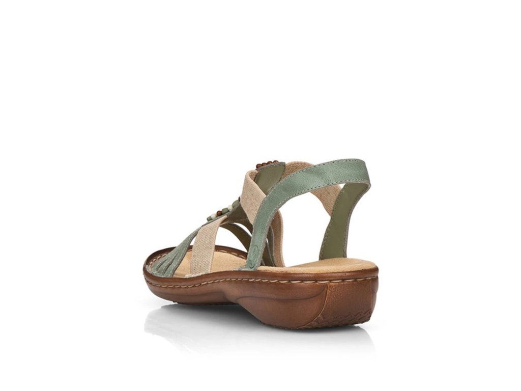 Tento model sandálků značky RIEKER Vás zaujme na první pohled. Svršek je zajímavě složen z několika pásků, které jsou ozdobeny designovými kuličky na středu. Pro snadné nazouvání a dokonalé přizpůsobení dle Vašich potřeb jsou na nártu a po stranách obuvi všité pružné gumičky. Stélka je pro Vaše pohodlí na každém kroku, a tak se nemusíte bát delších procházek. Tyto sandálky využijete v horkých letních dnech ať už k šatům, či kraťasům.