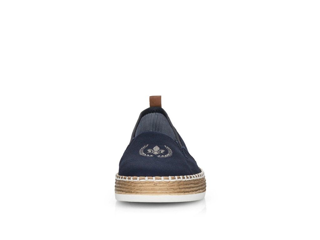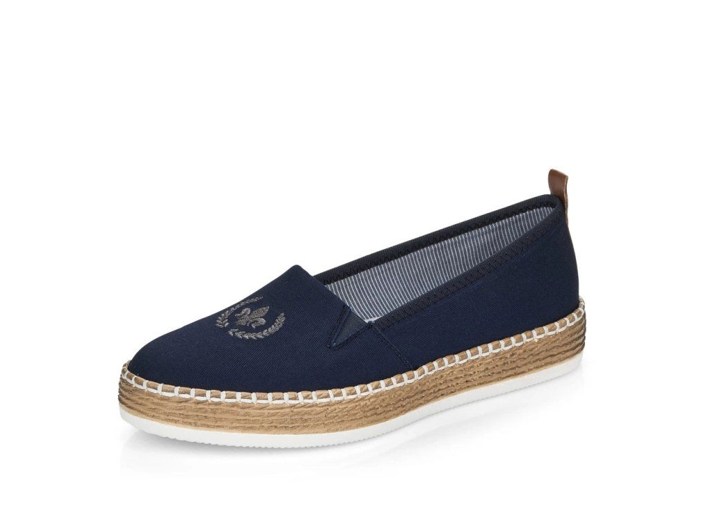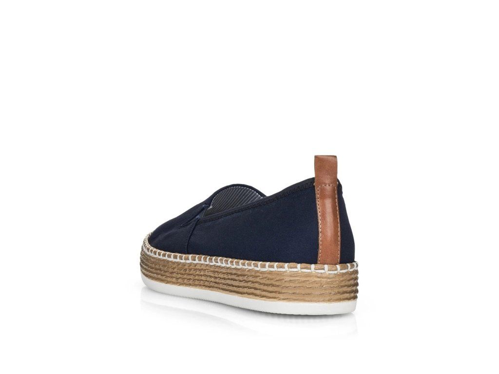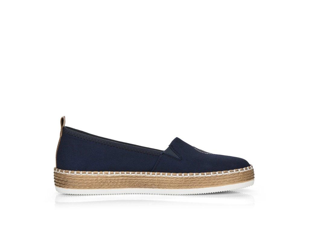 Plátěné mokasíny zaujmou především díky kontrastní podešvi s výrazným prošitím a jemným logem značky RIEKER. Pružné gumičky po stranách skvěle napomůžou Vašemu obutí. Jistě také oceníte měkkou stélku z přírodní usně, která dodá běžné chůzi pohodlnost a komfort. Dámský model, se kterým si můžete vyrazit například na procházku do parku.
