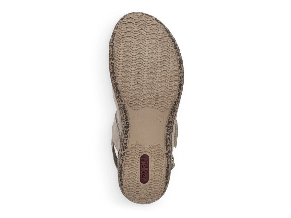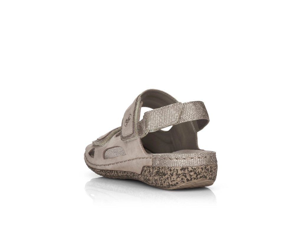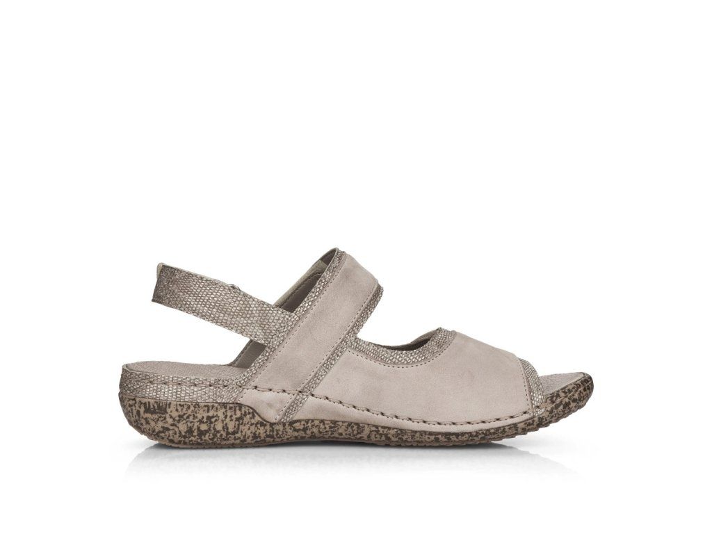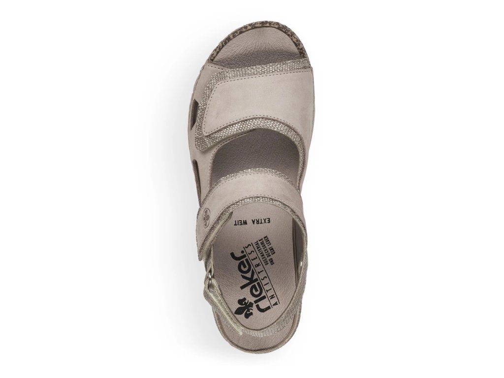 Dámské sandálky značky RIEKER Vás zaujmou na první pohled. Svršek je decentně doplněn částmi s hadím motivem. O snadné nazouvání a nastavení obuvi přímo dle Vašich požadavků se postarají pásky, které se zapínají na suchý zip. Měkká stélka je vyrobena z pravé kůže, a navíc je vyjímatelná. Tuto obuv ocení všechny ženy, které mají širší chodidlo a skvěle doplní letní outfity.