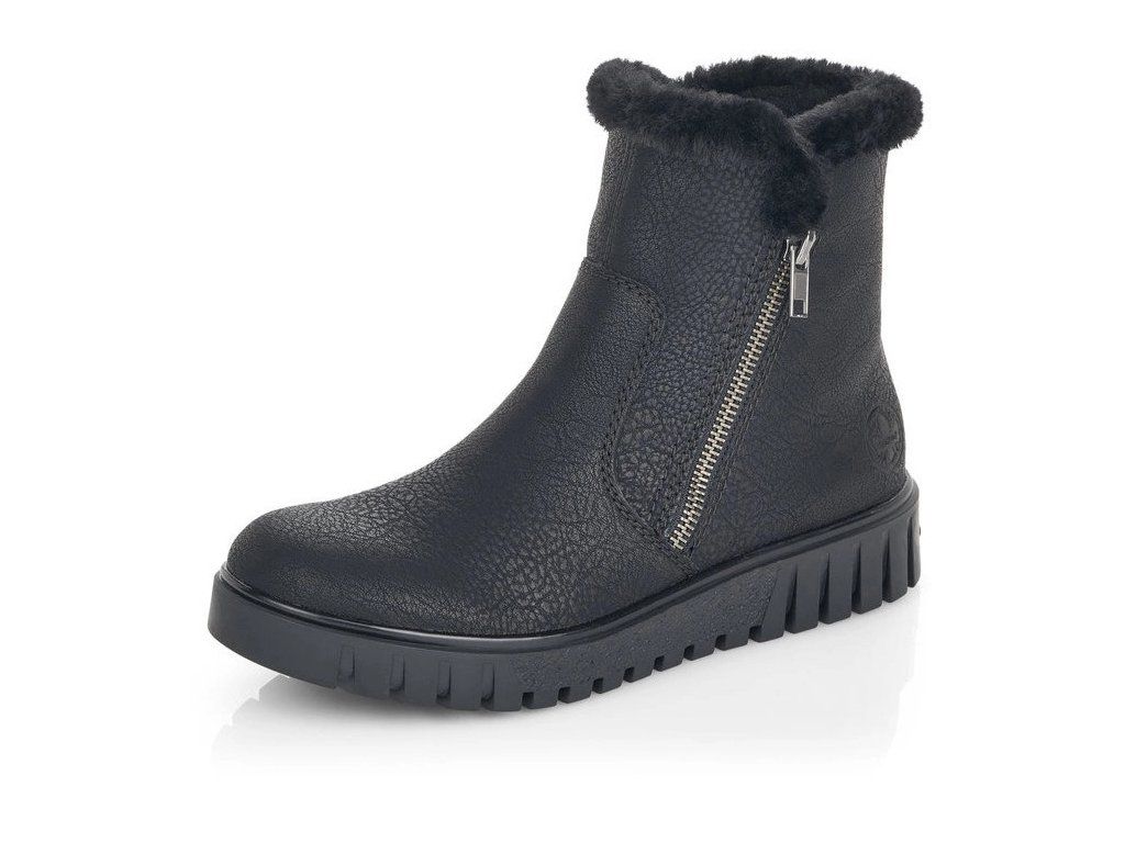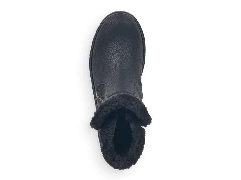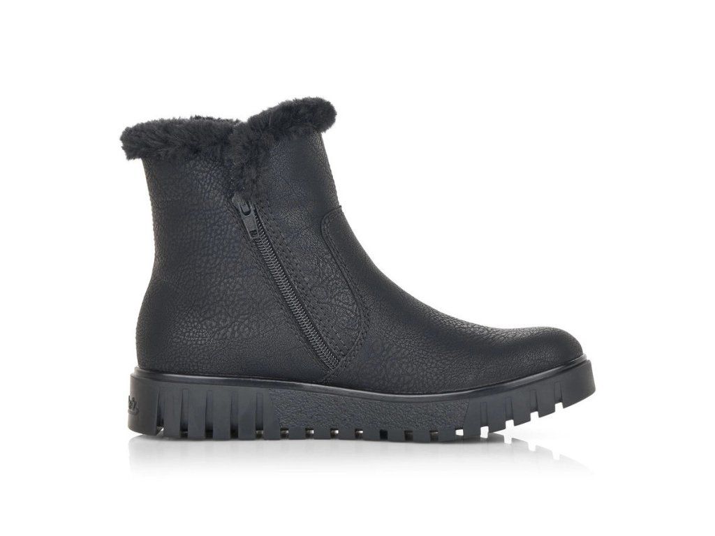 Tento dámský kotník v černé barvě je od značky Rieker a bude tou správnou pravou volbou pro chladné dny. Svršek je ozdoben decentním prošíváním, vytlačeným logem a kožíškovým lemem horního okraje, který přesahuje z podšívky. Snadné nazouvání Vám umožní funkční zipy po stranách obuvi. Pohodlí na každém kroku zajistí měkká stélka a podšívka z kvalitního hřejivého materiálu. Podešev je vysoká cca 3,5 cm a díky technologii Antistress je lehká, flexibilní a absorbuje nárazy při došlapu. Tento model bude skvělou volbou například na procházky městem.