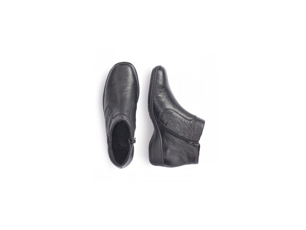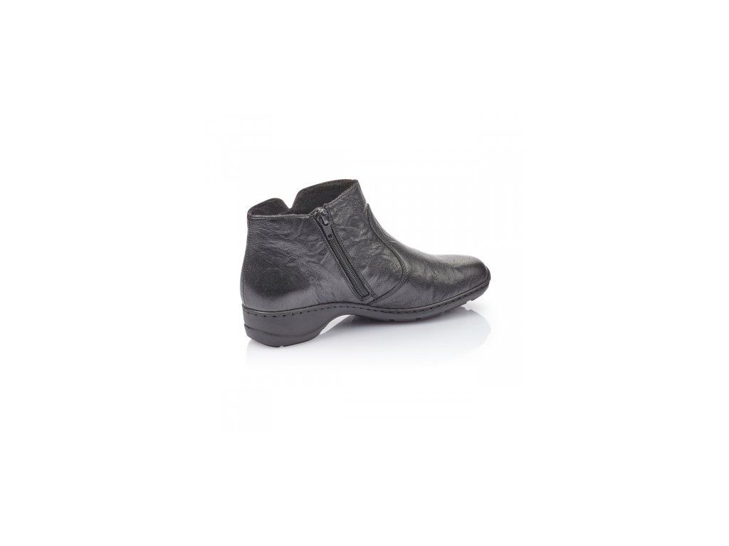 Nadčasové kotníkové kožené boty značky RIEKER jsou pro Vás vhodné jak ke kalhotám, tak k sukni. Na boku z vnitřní strany Vám poslouží zip k lepšímu obutí. Podešev má technologii antistress, která utlumí nárazy a otřesy při chůzi. Tyto boty budou Vaším každodenním společníkem.
