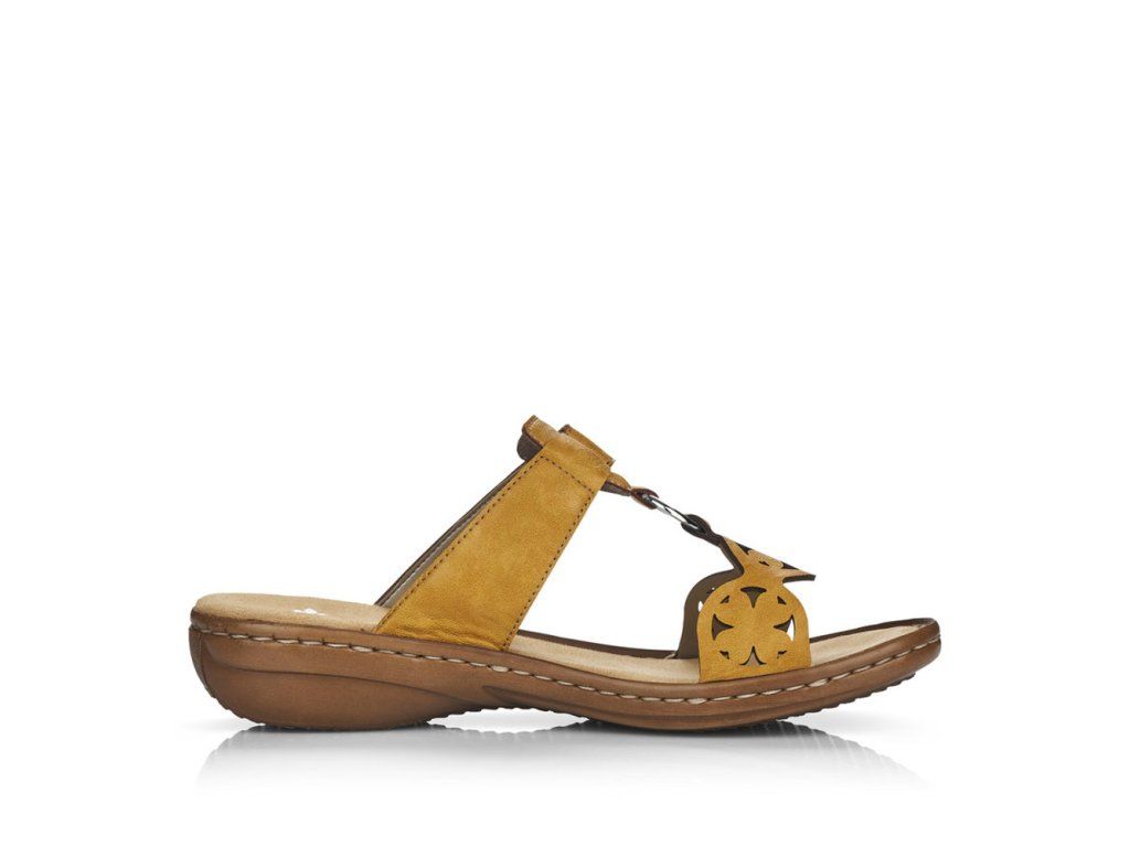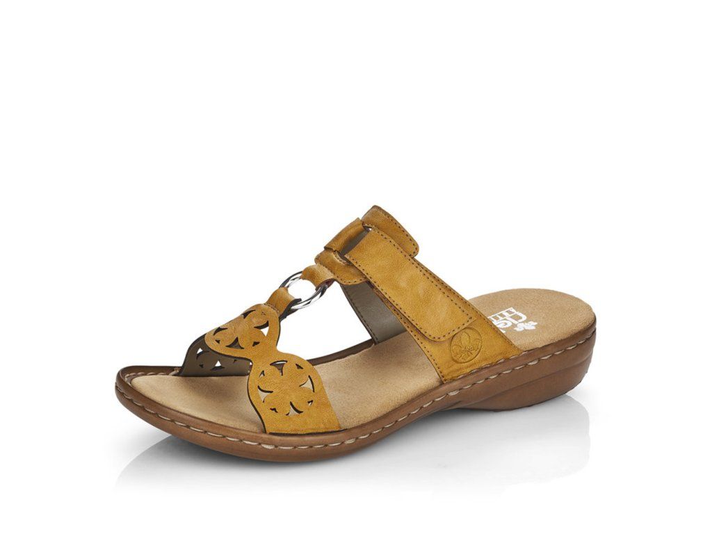 Pohodlné dámské nazouváky značky RIEKER využijete ať už do práce nebo na procházku do města. Přední pásek je ozdoben perforací v podobě čtyřlístků a se zadním páskem je spojen kovovou aplikací. Nártový pásek je na suchý zip, tedy můžete si obuv nastavit přímo dle svých požadavků. Měkká stélka je vyrobena z příjemného materiálu a podešev svým provedením a výškou dolaďuje celkový vzhled k dokonalosti. Tento model nazouváků zaručeně doladí Vaše letní outfity k dokonalosti.