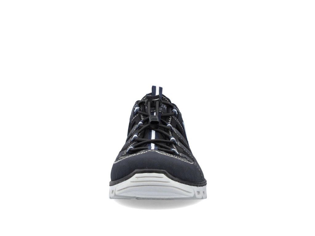 Originální pánské tenisky značky RIEIKER, které nesmí chybět ve Vašem botníku. Prodyšný svršek je obšitý bílou nití a doplněn logem značky. Pro snadné obutí slouží gumičky. Stélka je vyrobena z paměťové pěny pro dokonalé pohodlí. Jemná podšívka je z kvalitního materiálu, abyste v botách vydržel po celý den. Tento model bude ideálním partnerem na pochůzky ve městě.