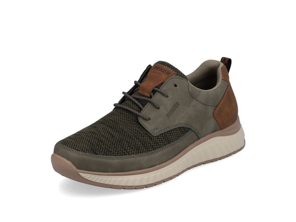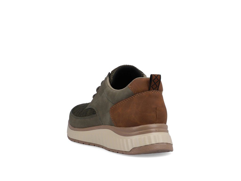 Hledáte kvalitní obuv na procházky v přírodě? Tento model značky RIEKER bude tou správnou volbou. Svršek v kombinaci materiálů v zeleném a hnědém odstínu je dozdoben designovou podešví. Díky tkaničkám na šněrování si boty přizpůsobíte do maximálního pohodlí. Díky vyjímatelné stélce MemoSoft, která změkčuje došlap si budete užívat maximálně každý krok. Tenisky využijete na běžné procházky, nebo každodenní pochůzky po městě.